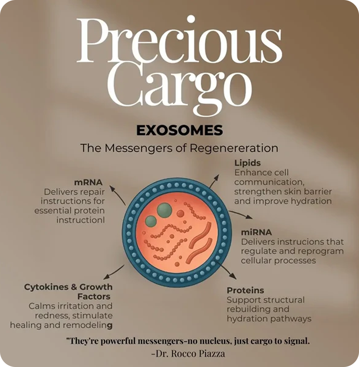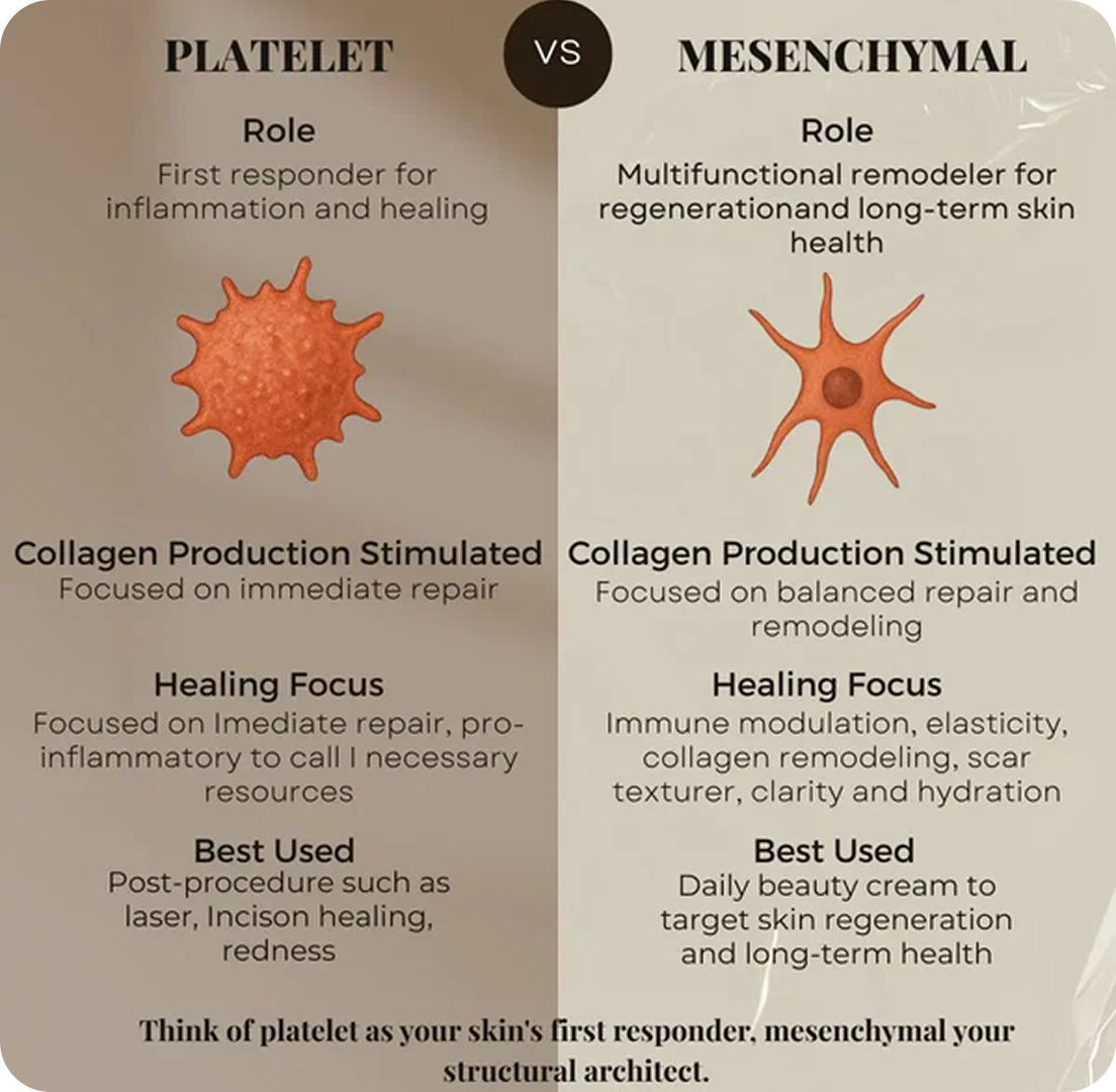 Surgeon Insight: Platelet exosomes start the repair; Mesenchymal exosomes build the house. They are the closest biological match for skin collagen remodeling, making them ideal for the thinning "crepey" skin around the eyes.