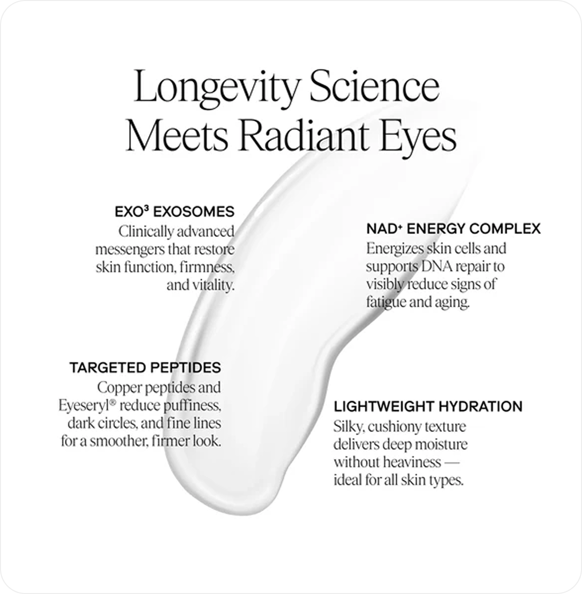Formulated to support long-term skin vitality, EXO EYE helps improve the appearance of under-eye texture, tone, and resilience without heaviness or irritation.